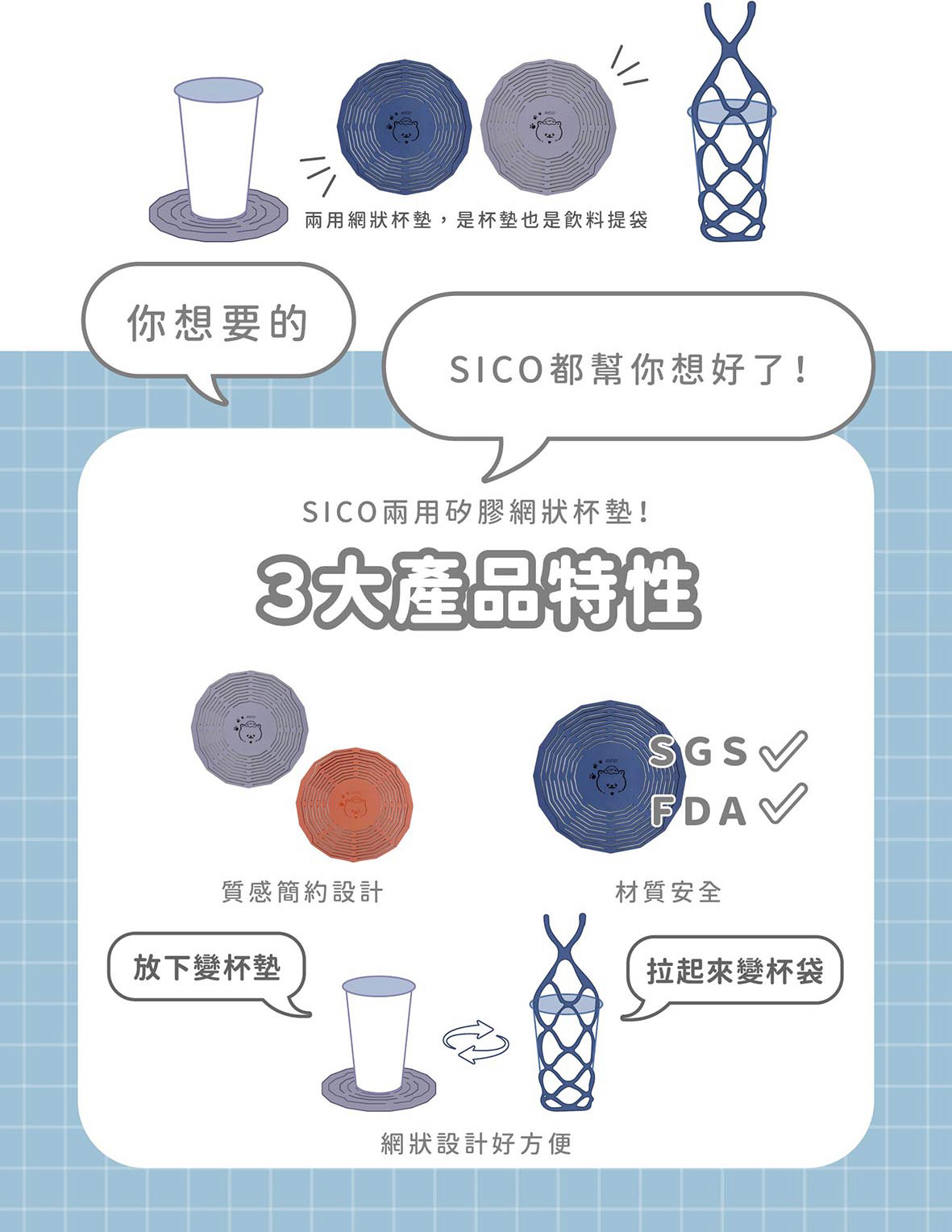 ♦︎ 可變身飲料提袋、隔熱墊、止滑墊